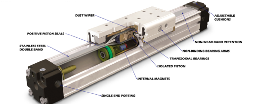 double band pneumatic cylinder. The inner sealing band